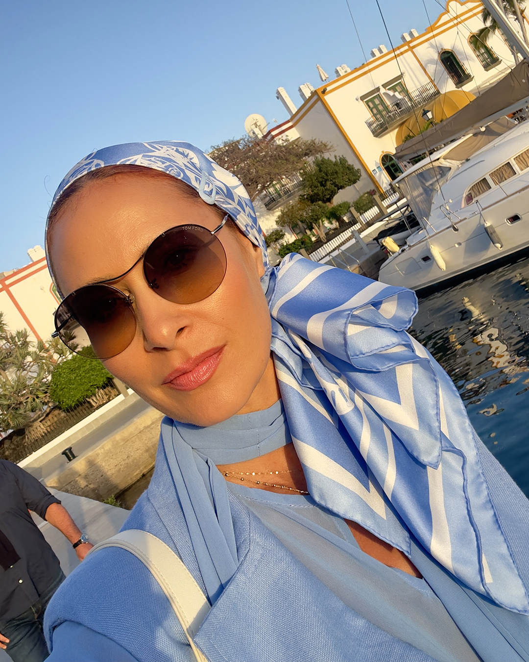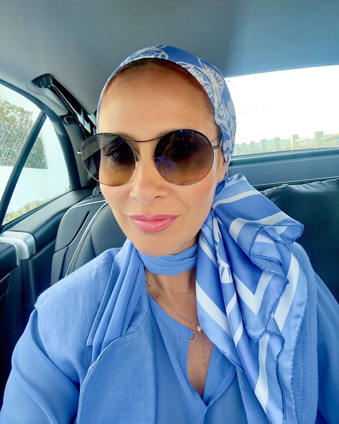 Elegantná hodvábna šatka v nežných odtieňoch nebesky modrej a bielej, inšpirovaná nadčasovou retro eleganciou. Dokonalá pre letné farebné typy.