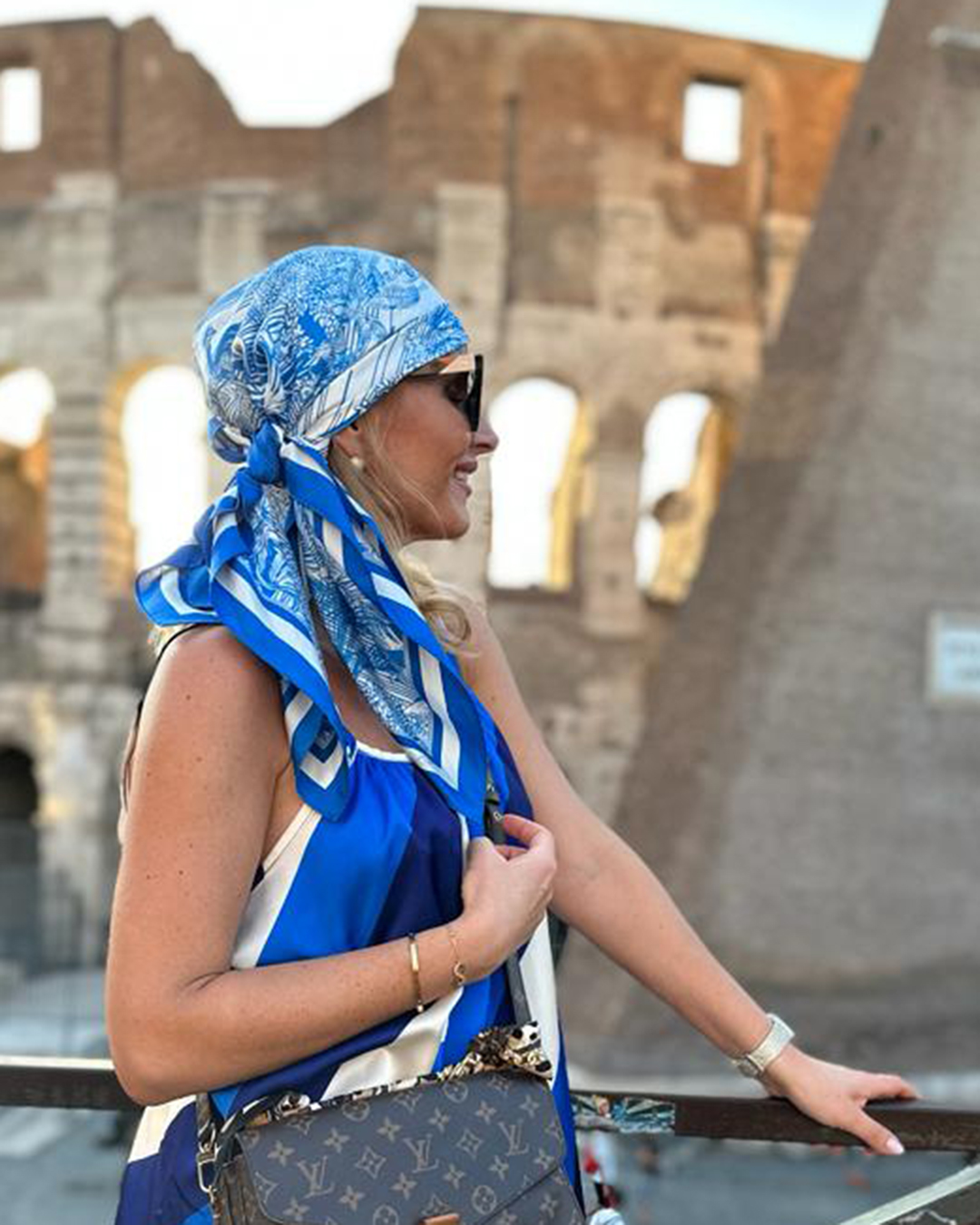 Luxusná hodvábna šatka Blue Jungle vás okúzli jemným modrým vzorom na čistom bielom podklade, ktorý evokuje exotickú krásu tropickej džungle. Jarná farebnosť a prírodný motív dodajú vášmu outfitu svieži a elegantný nádych, ideálny na každú príležitosť.