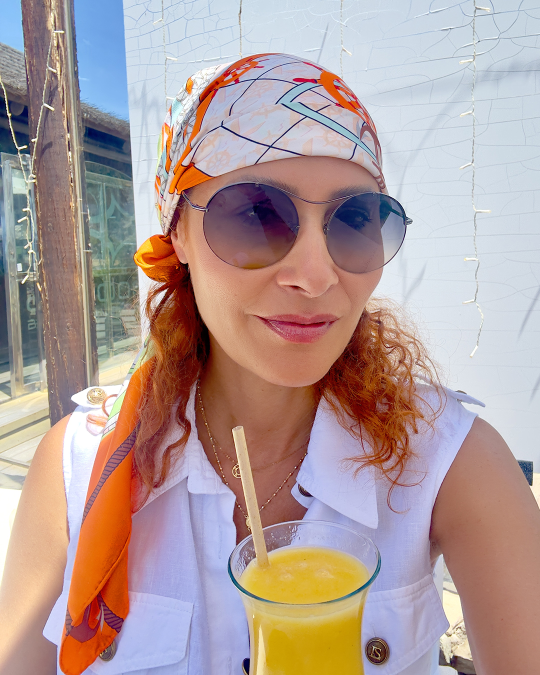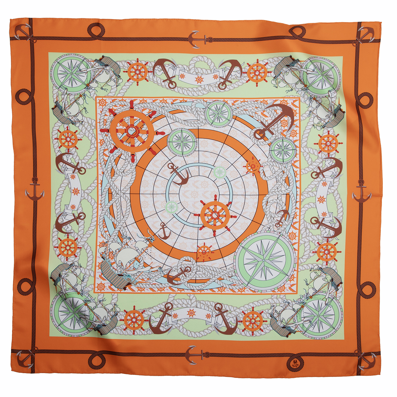 Hodvábna šatka Bon Voyage je nšpirovaná túžbou po dobrodružstve, kombinuje hrejivé tóny oranžovej s jemnými zelenými akcentmi, vytvárajúc dokonalý doplnok pre moderné cestovateľky.