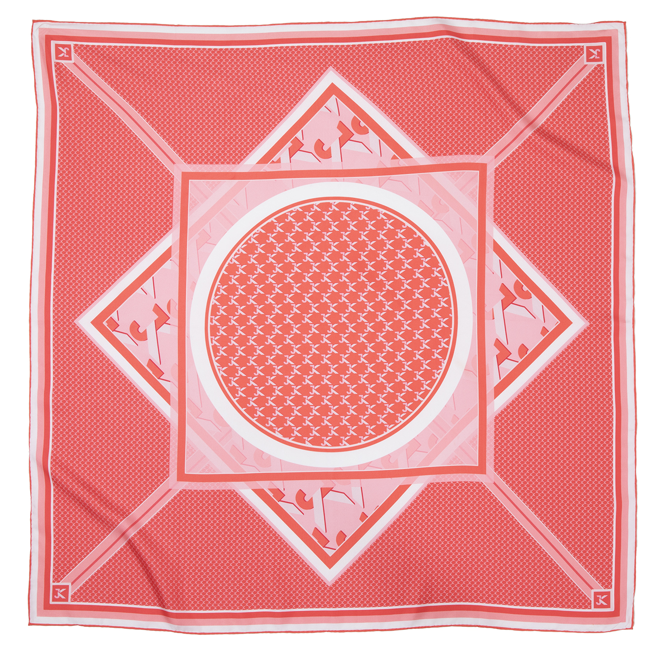 Nadčasová klasika, tou je určite táto hodvábna šatka s rôznymi veľkosťami loga JK vo výraznej koralovej farbe v kombinácii s bielou. Šatka je určená pre jarné kontrastné typy.