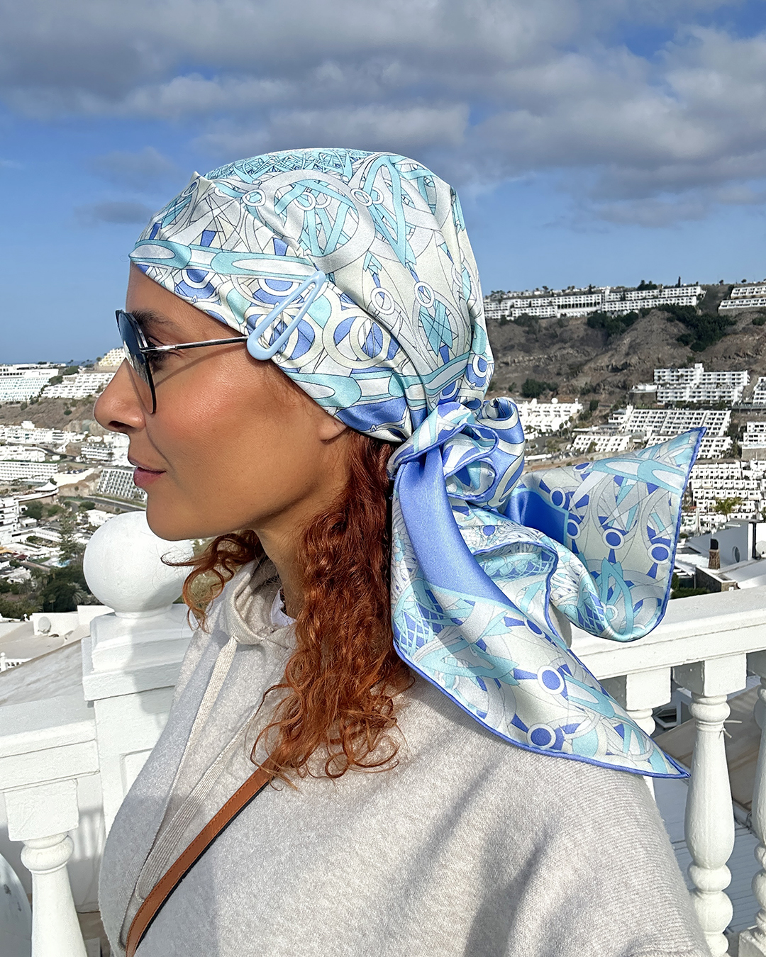 Hodvábna šatka Soft Summer Blue Mandala vás očarí jemnými modrými odtieňmi a harmonickým mandala vzorom, ktorý evokuje pokoj a eleganciu. Tlmená letná farebnosť v odtieňoch modrej vytvára sofistikovaný doplnok ideálny pre letné farebné typy, ktoré preferujú jemnejšie a chladnejšie tóny. Tento luxusný kúsok z kvalitného hodvábu dodá vášmu outfitu nadčasovú eleganciu a zjemní každý look s rafinovaným šarmom.